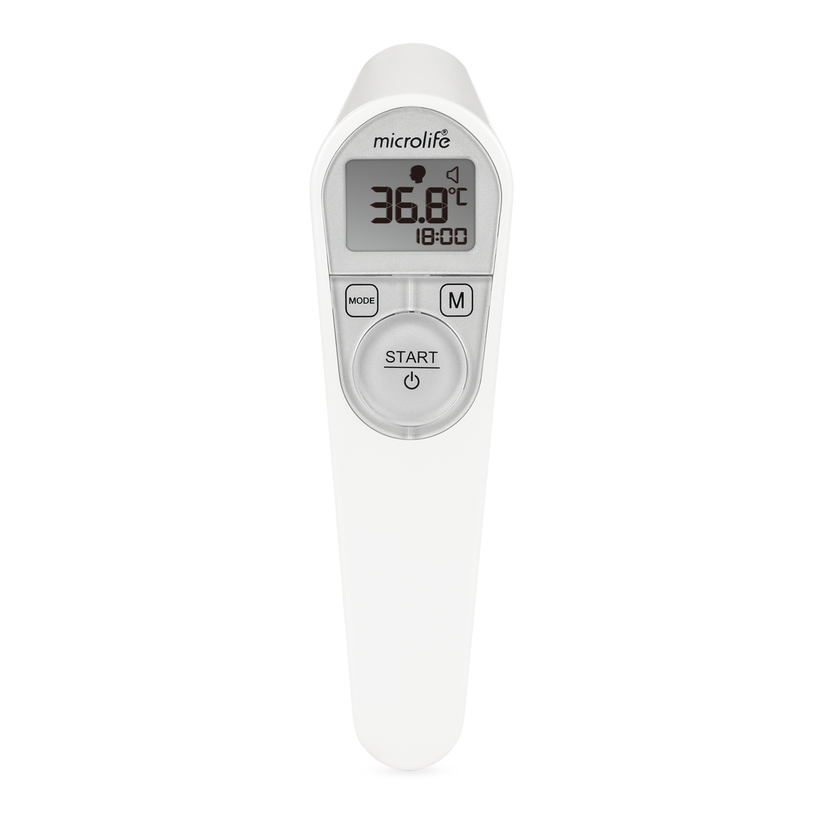 The Microlife NC 200 is a clinically tested infrared thermometer designed for measuring body and object temperature. Its ergonomic design enables a simple, gentle and precise measurement without touching the patient. It combines many benefits for an innovative and safe home diagnostic: highest accuracy, quality and reliability. The measurement is automatically taken when the device detects the distance is between 1 - 5 cm. The guidance system for self-measurement shows the user on the underside of the thermometer with an indication light that the device is at the right distance and indicates the end of the measurement. The Silent Glow TM technology with display color change, provides direct information about the measured temperature: Green display (reading up to 37.4 °C), red display (reading higher than 37.4 °C). The large illuminated display allows a comfortable measurement without disturbing the child's sleep. With a memory capable of recording up to 30 readings with time and date, it’s possible to track temperature changes over a period of time and monitor trends.